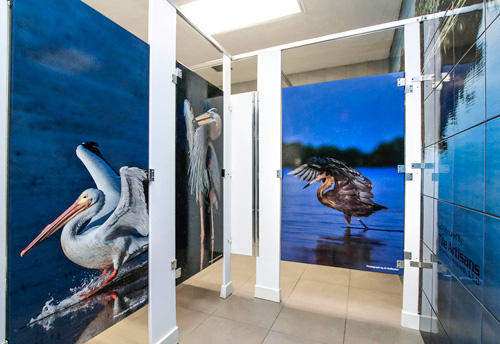 Manatees, otters, alligators – oh my! The newest adventure at the J.N. “Ding” Darling National Wildlife Refuge comes to life with restrooms that immerse you in underwater scenery. Life-size animal sculptures grace the walls leading to and within the restrooms. The facility walls feature mesmerizing photographic tile murals of lush, watery mangrove scenes and its stalls showcase professional bird photography. These Learning Lavatories not only dazzle but educate visitors with interpretive messaging about local wildlife and saving the environment, turning a necessary “nature call” into a “nature enthrall.”
